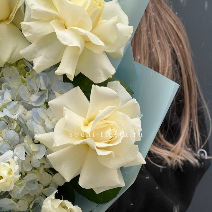 Пышный букет из белых роз