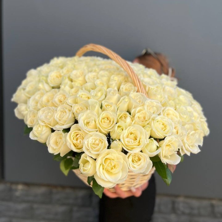 151 белая роза в корзине