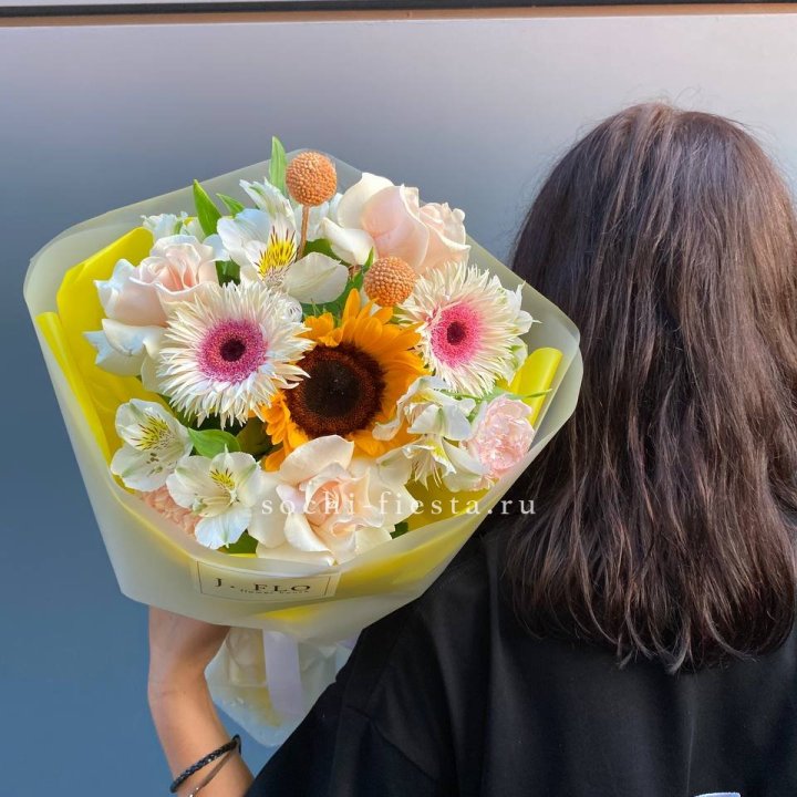 Букет с подсолнухом "Елоу"