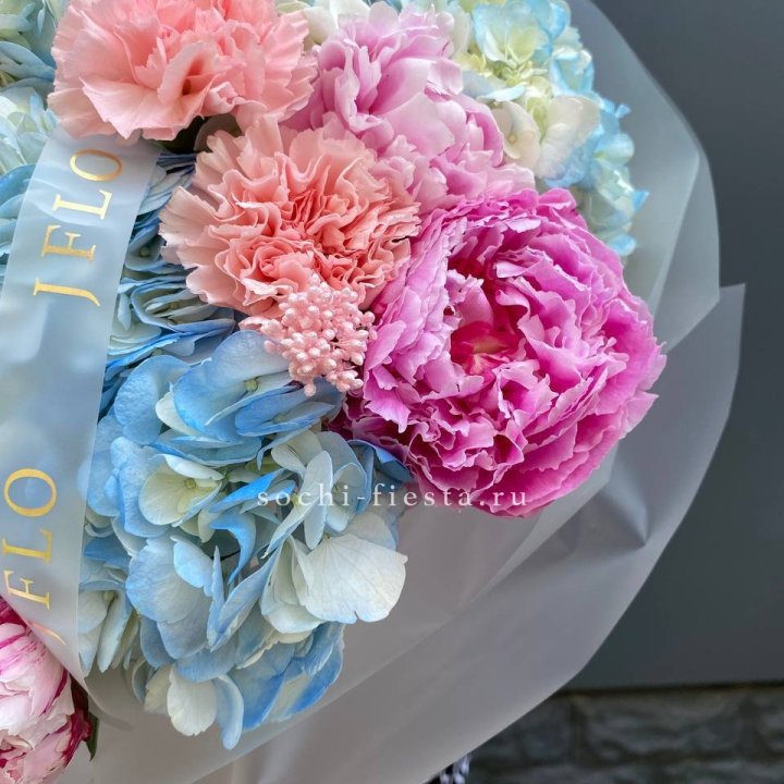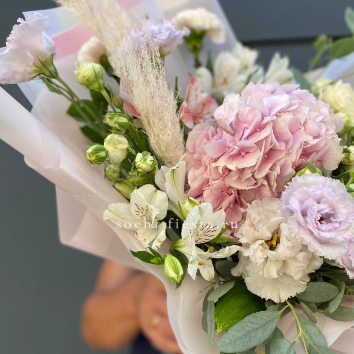 Букет гортензии и роз "Валенсия"