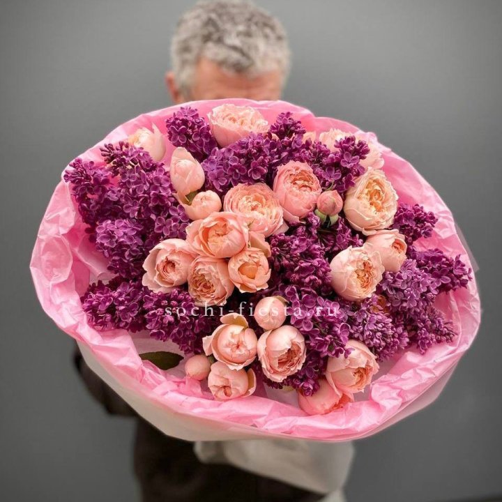 Дуо букет из кустовых роз и сирени
