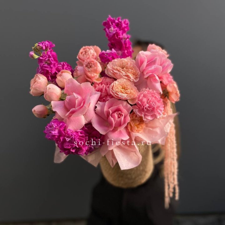 Корзина из пионовидных роз
