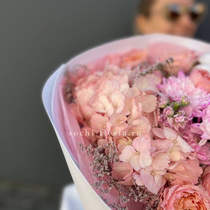 Букет гортензии и кустовых роз