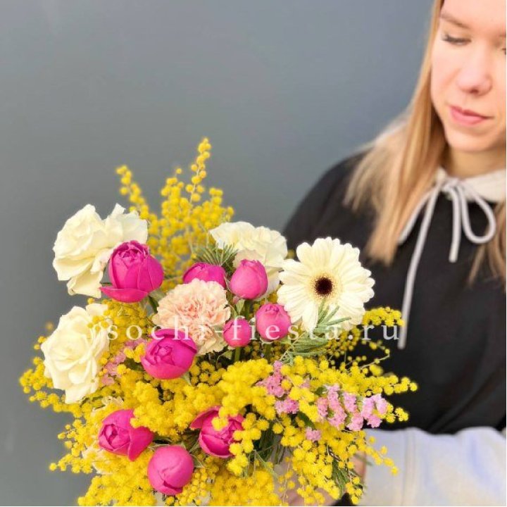 Букет тюльпанов и мимозы