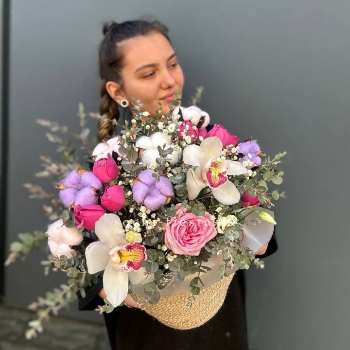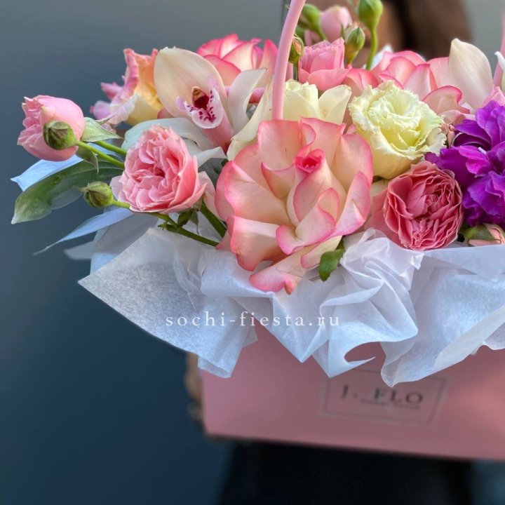 Розы и орхидеи в боксе