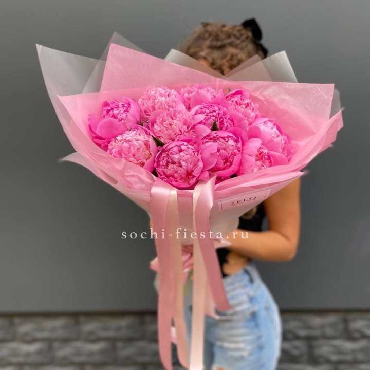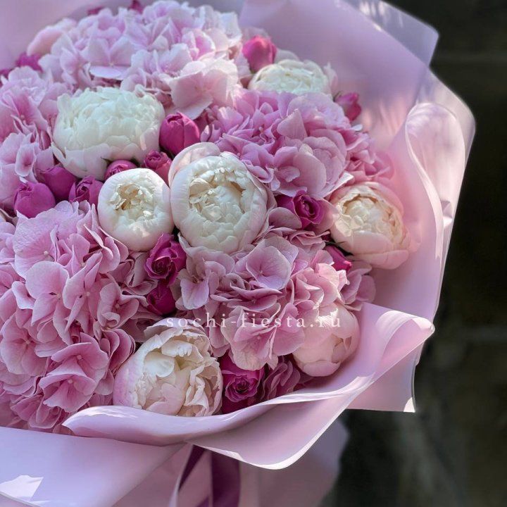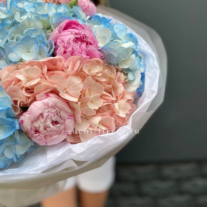 Цветочная корзина из пионов и пионовидных роз "Перфекте"