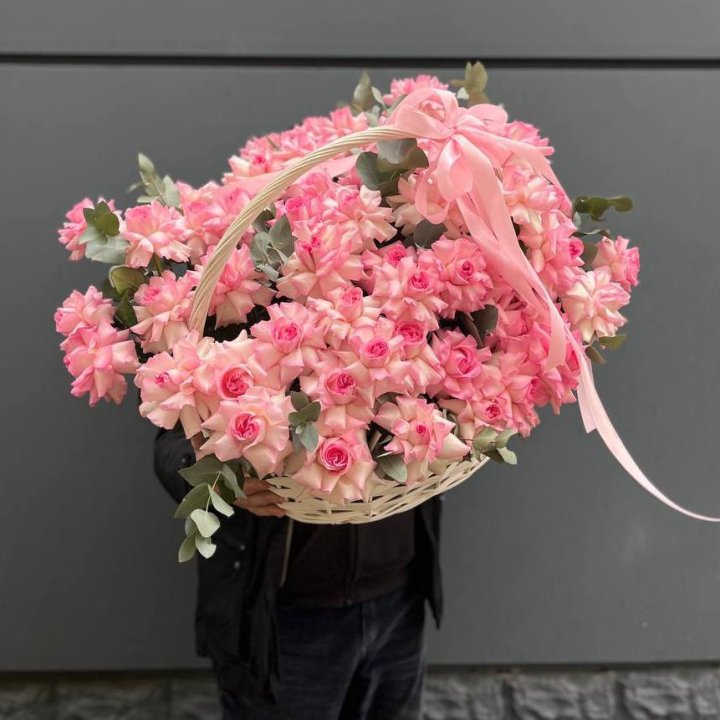 51 розовая роза в корзине