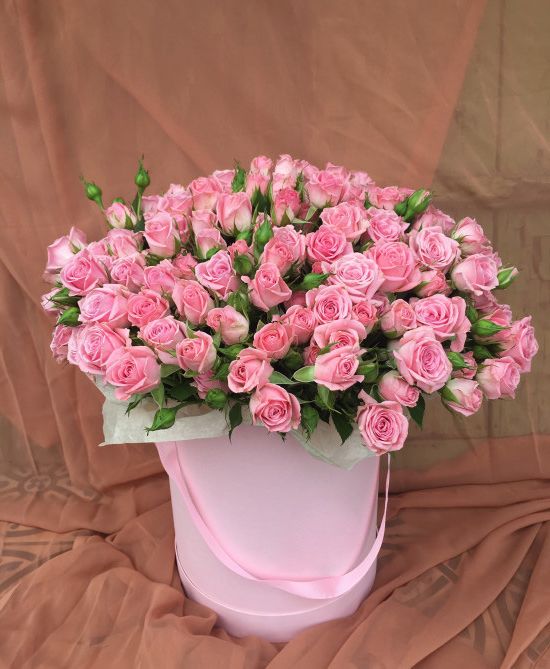 розовые розы кустовые бомбастик, пленка.