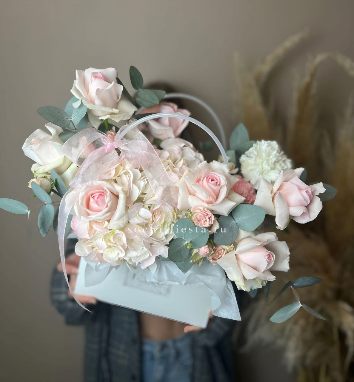гортензии в джутовом кашпо.