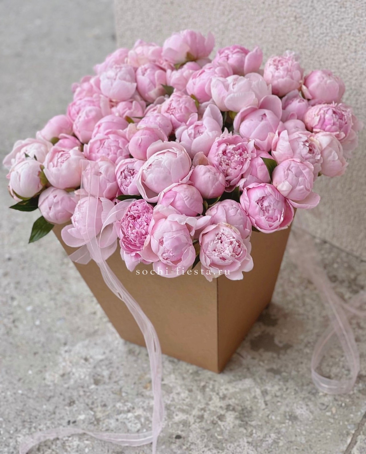 Сорок девять бутонов наполняют пространство объемом и густотой цвета. Композиция в крафтовой упаковке держит форму и создает ощущение живого цветочного облака.