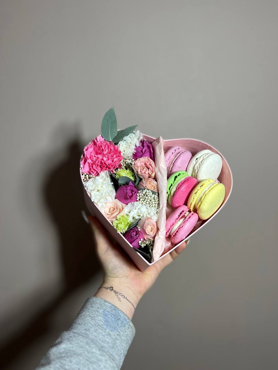 Для заказа товара "Дуо цветы и макаронсы" с доставкой в Казани нажмите в корзину