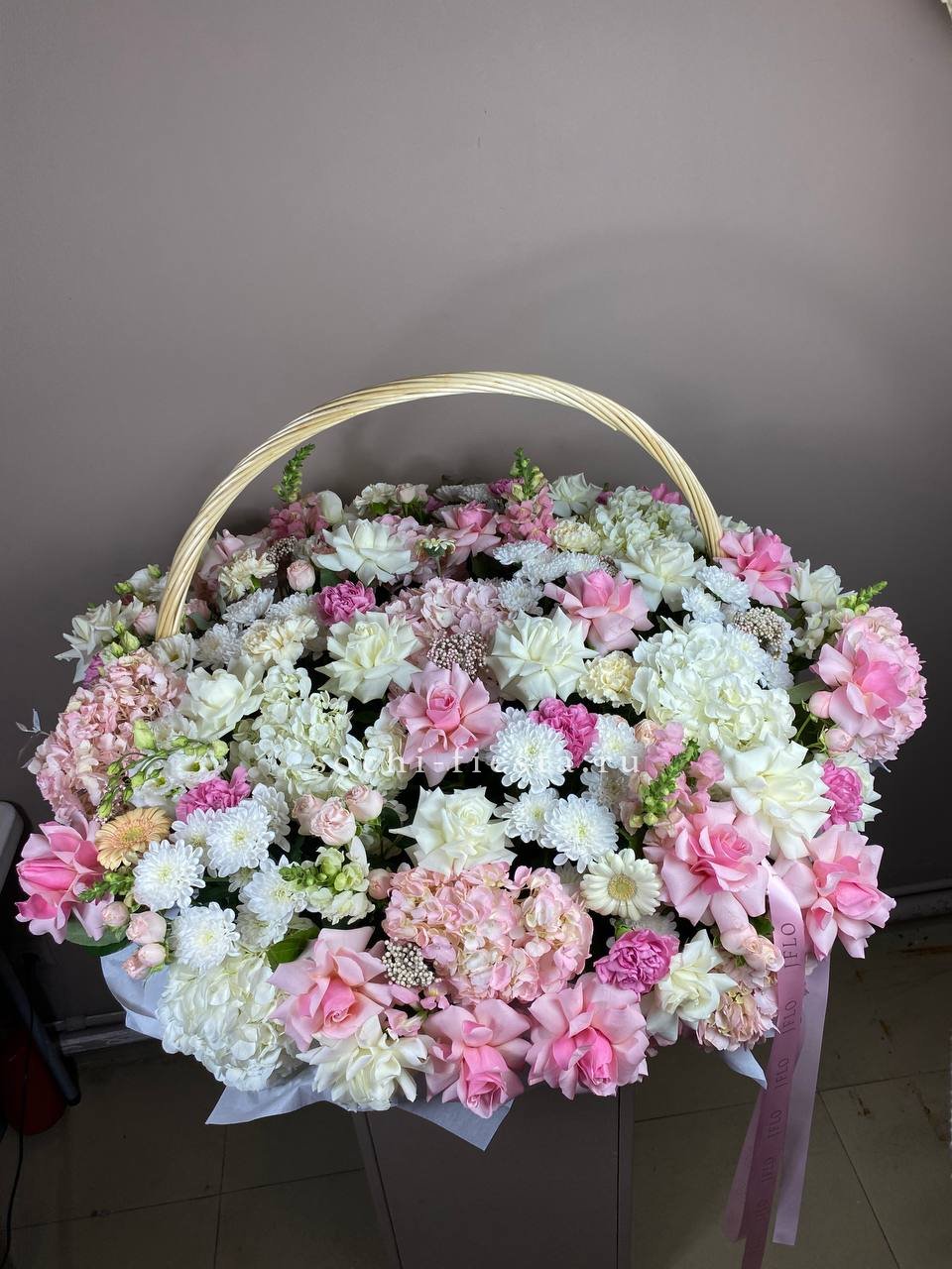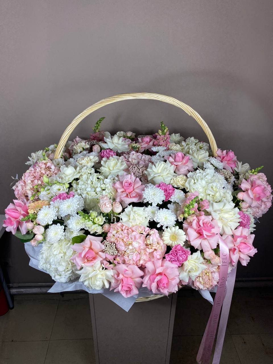 Для заказа товара "Цветочная корзина "Пинки вайт"" с доставкой в Казани нажмите в корзину