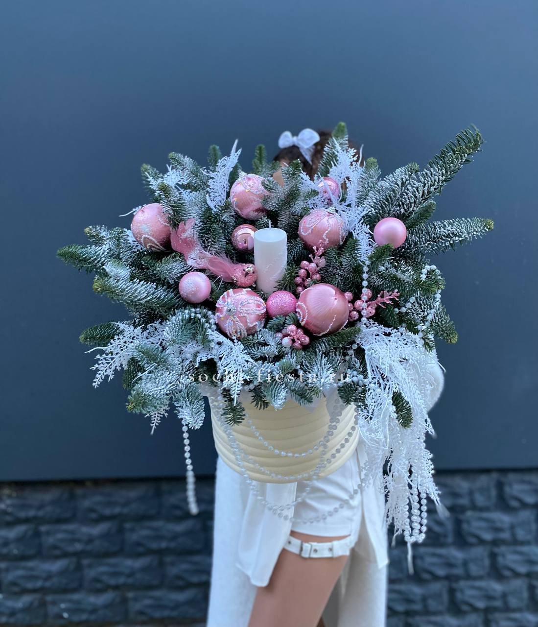 нобилис, цилиндр, оазис, свечи, новогодние игрушки, декор ВНИМАНИЕ! Готовая композиция (декор) может иметь незначительные внешние отличия от примера на фотографии.