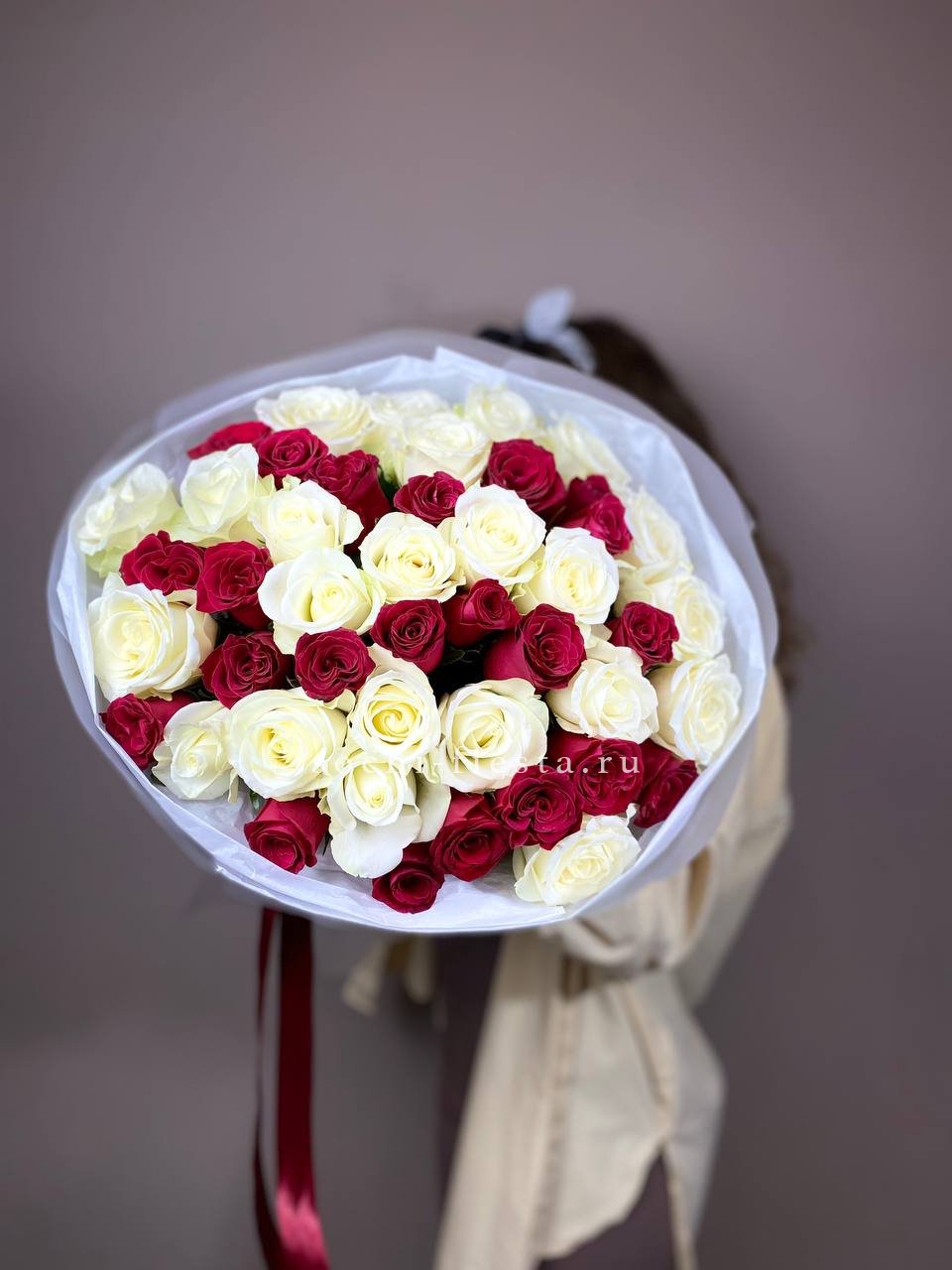 Для заказа товара "Букет из красных белых 45 роз" с доставкой в Казани нажмите в корзину