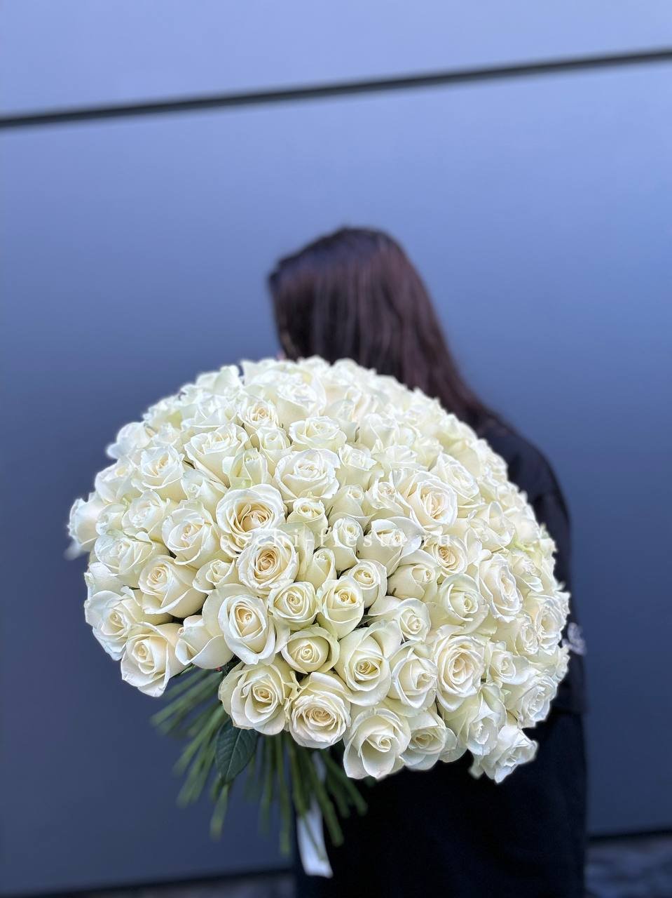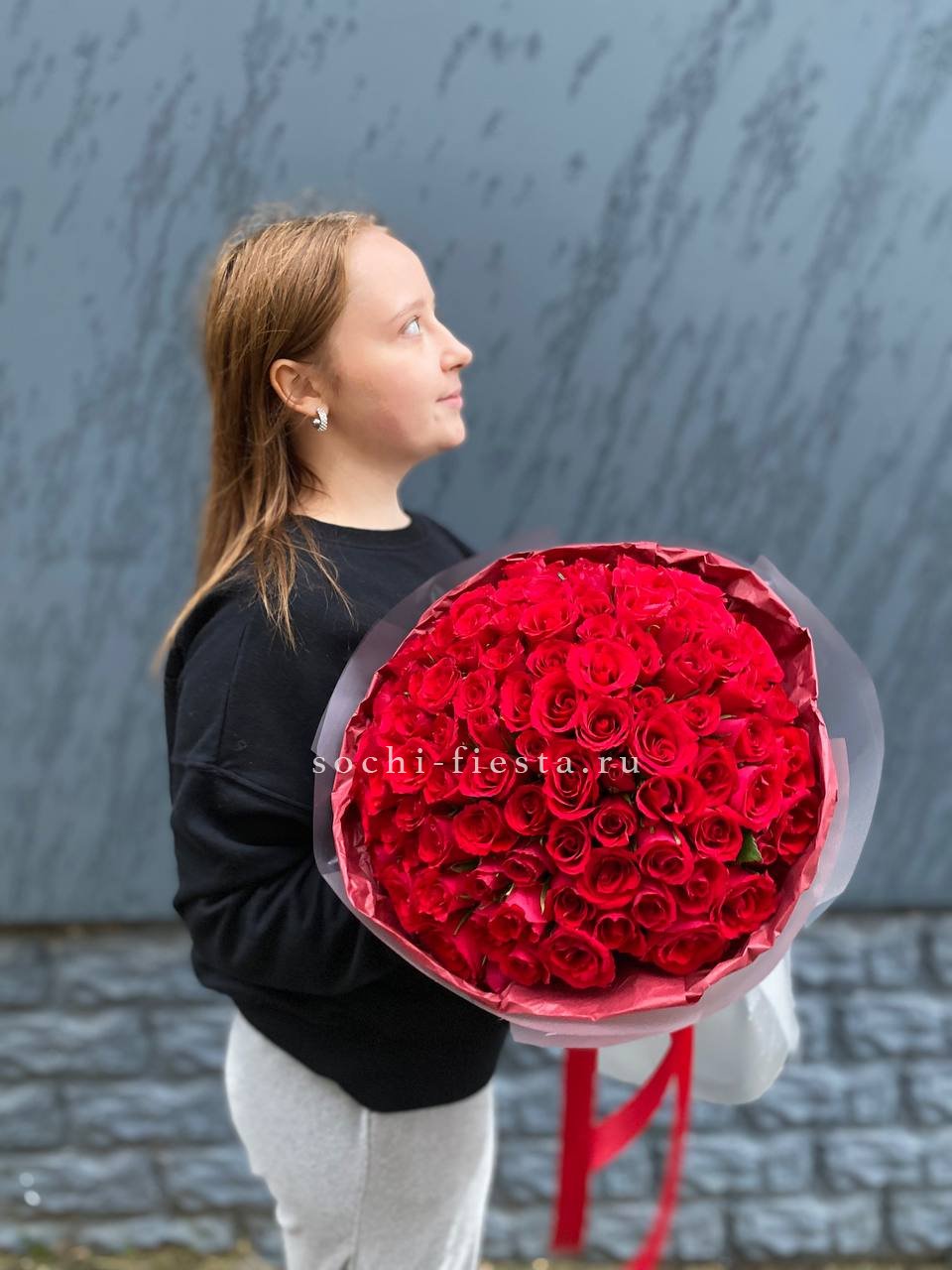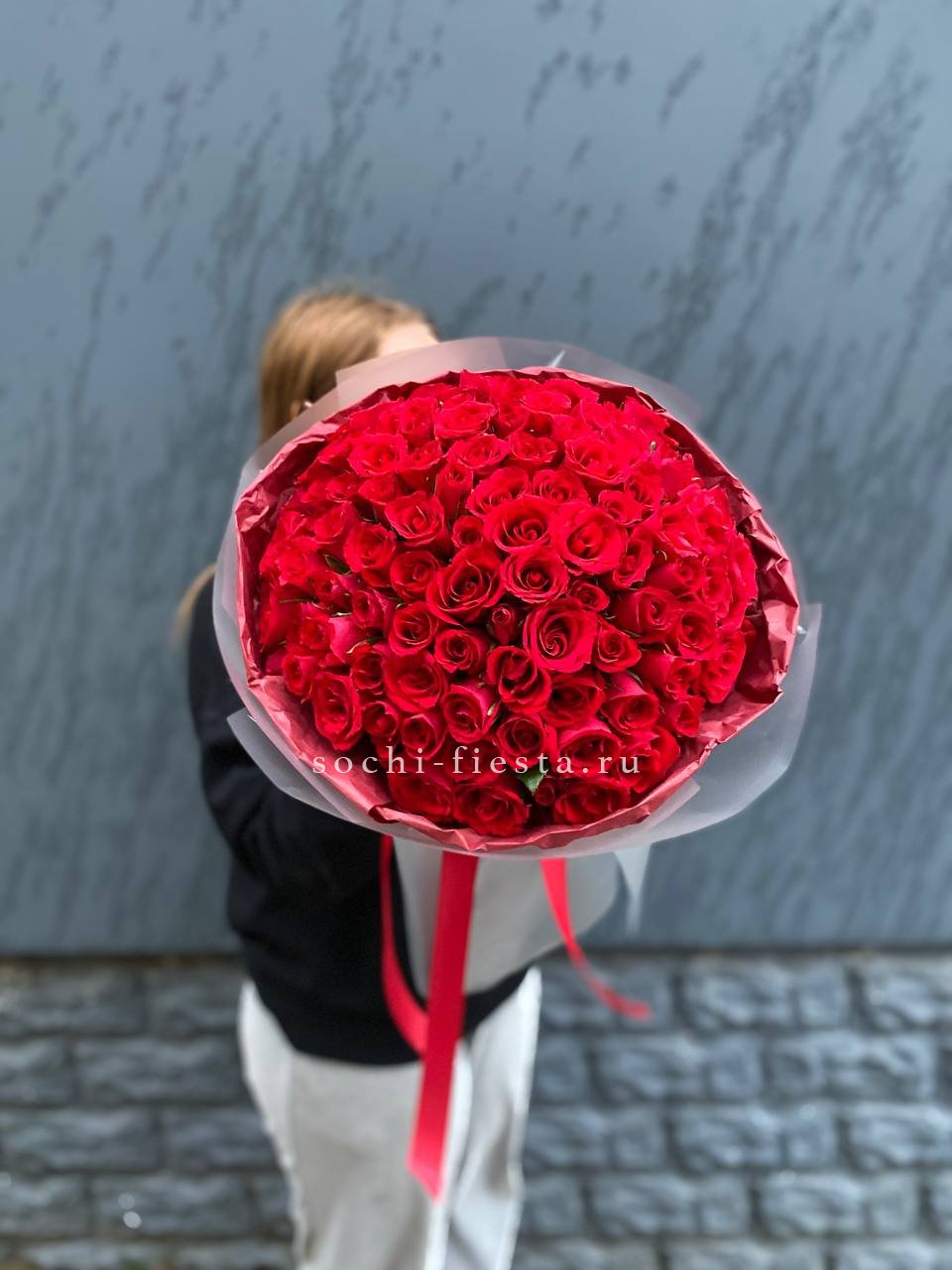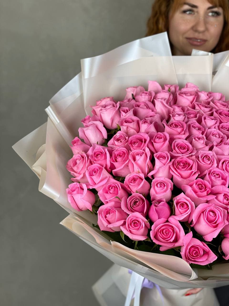 Розы Karolina раскрываются плавными переходами нежно-розовых оттенков. Сто один бутон выстраивается в плотную композицию с мягким цветовым звучанием.