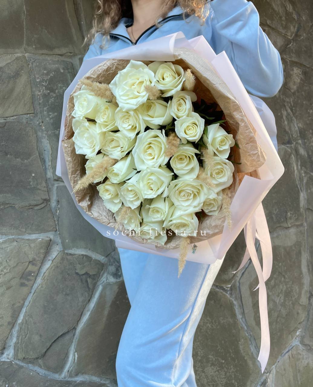 Для заказа товара "25 белых роз с сухоцветами" с доставкой в Казани нажмите в корзину