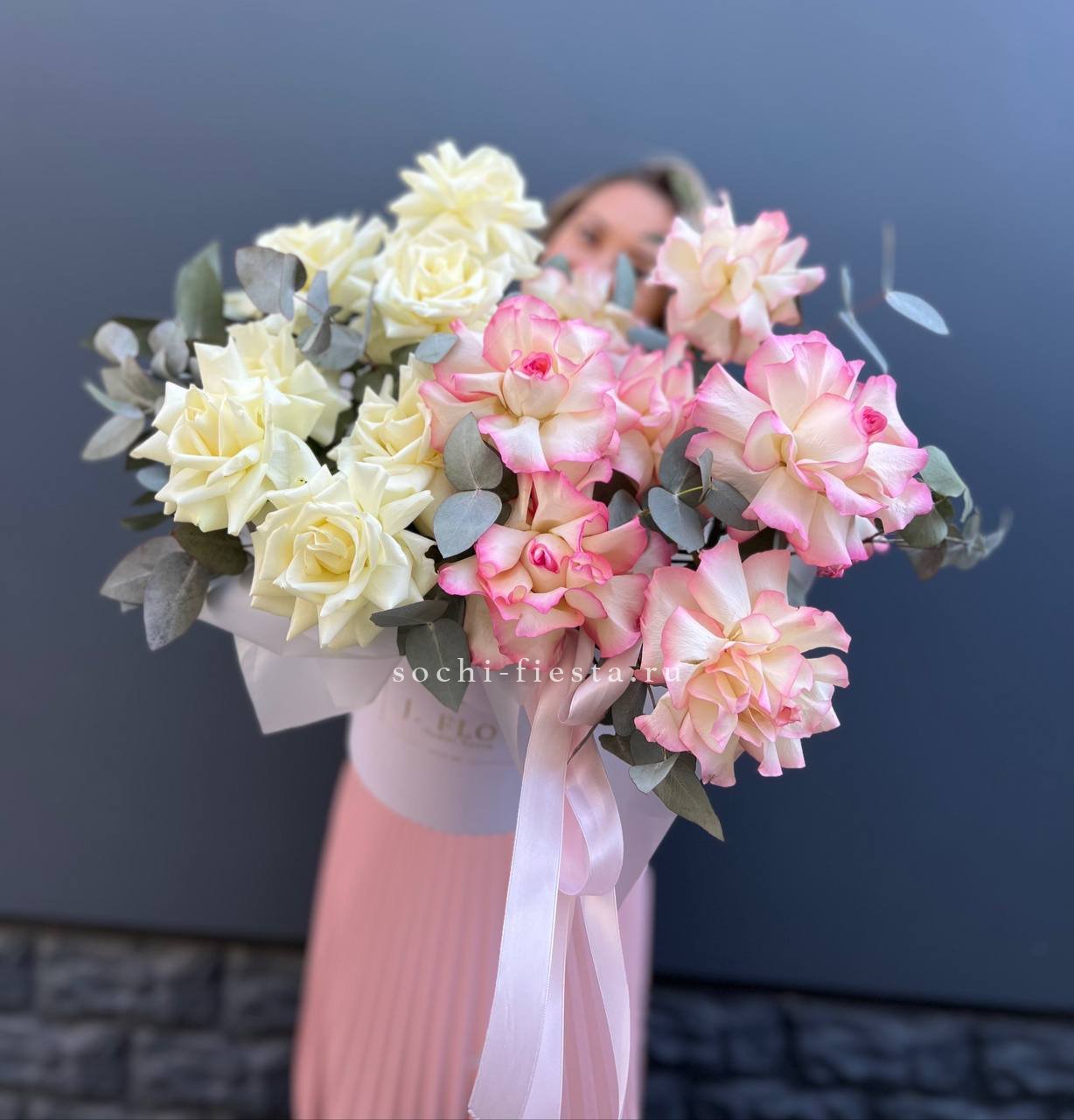 вывернутые розы, эвкалипт, лента, авторская упаковка.