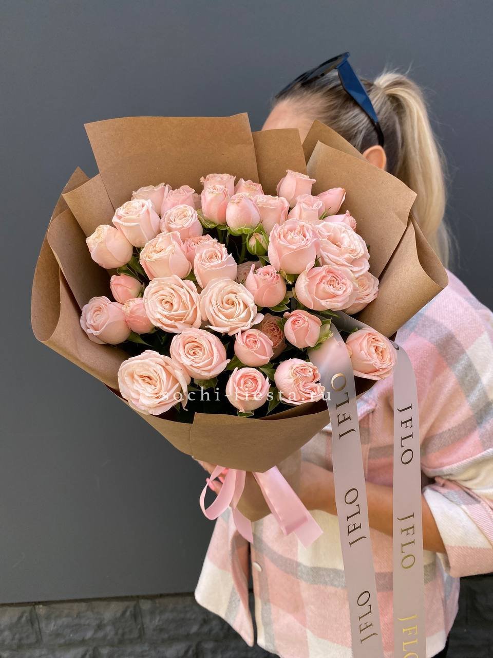 Кустовые розы Бомбастик в крафте