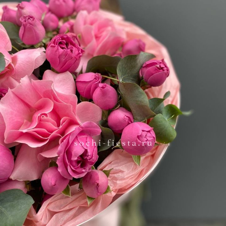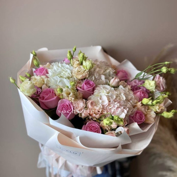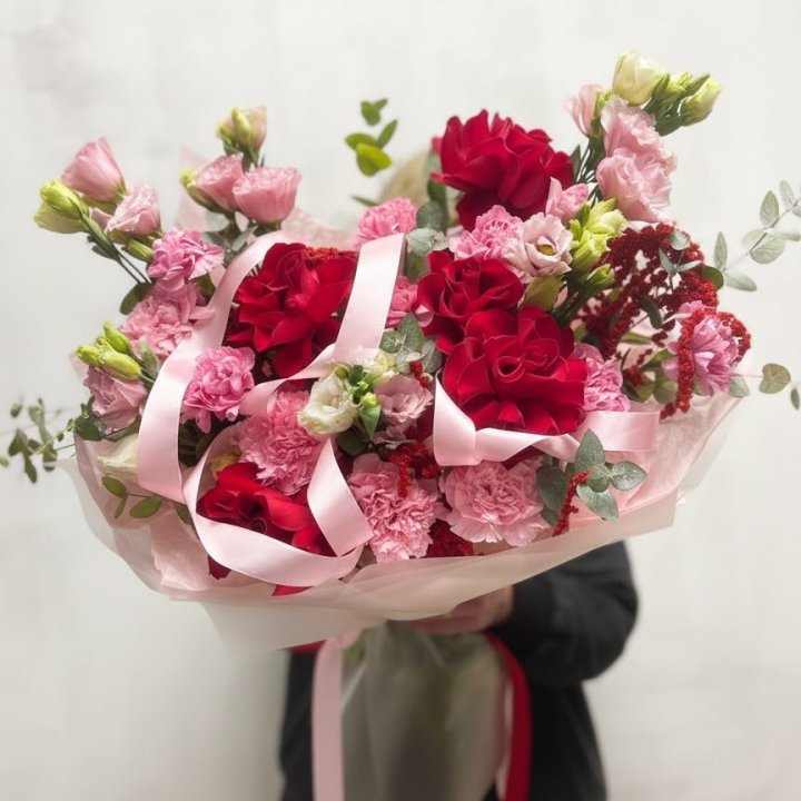 Основа казанских сборных букетов: розы (Freedom, Red Naomi, Mondial, Avalanche), пионы в сезон (Sarah Bernhardt, Bowl of Cream), ранункулюсы, эустома, фрезия, хризантема, альстромерия. Казанский клиент ценит объём и наполненность: скромный букет из 7 стеблей — не в казанской традиции. Здесь принято дарить щедро.