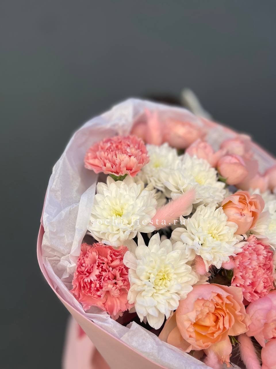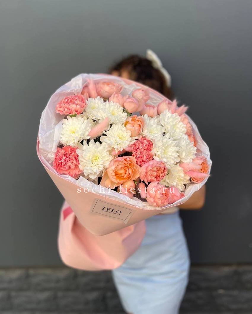 джумилия, хризантема, антиринум, диантус, мисти баблс, упаковка.