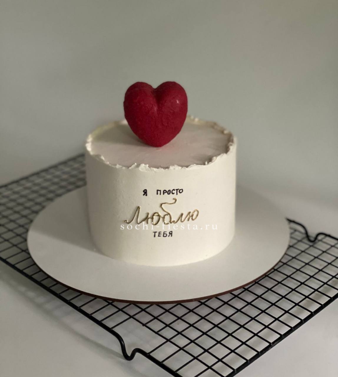 Форма сердца задает романтичное настроение всему столу. Дизайнерское исполнение и ручная работа делают этот торт запоминающимся акцентом праздника. Весит полтора килограмма и больше.